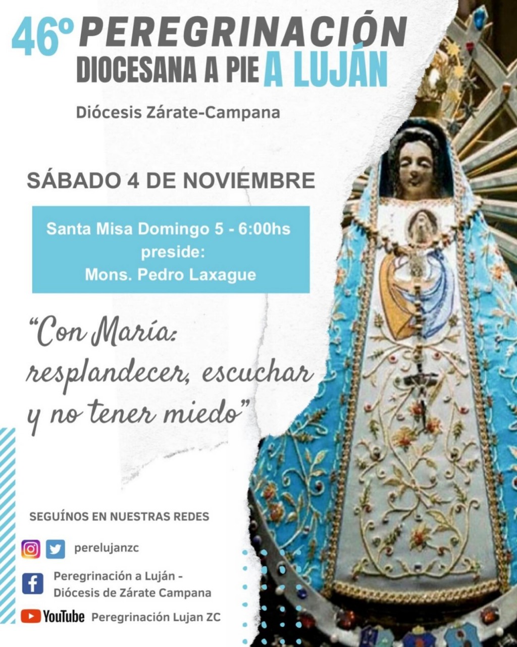 Con el lema "Como María, resplandecer, escuchar y no tener miedo" se realizará el sábado 4 de noviembre. La partida de la columna de Campana será a las 18. La Santa Misa en el Santuario se celebrará el domingo a las 6, presidida por Nuestro Obispo Diocesano Mons.� Pedro� Laxague. AUDIO: SERGIO PANDIANI - coordinador