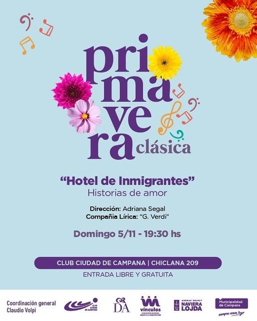 El ciclo Primavera Clásica tendrá su última velada en el Club Ciudad de Campana este domingo 5 de noviembre a las 19:30. Será una noche lírica con entrada libre y gratuita. AUDIO: CLAUDIO VOLPI - coordinador