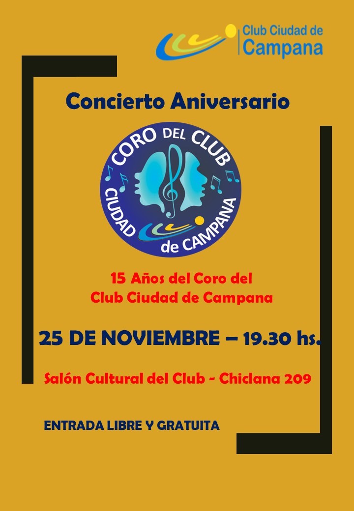 Este sábado a las 19 el coro del club Ciudad de Campana celebra sus 15 años. En el salón cultural del club repasarán todo su repertorio con entrada libre y gratuita. AUDIO: CLAUDIO VOLPI - director coro CCC