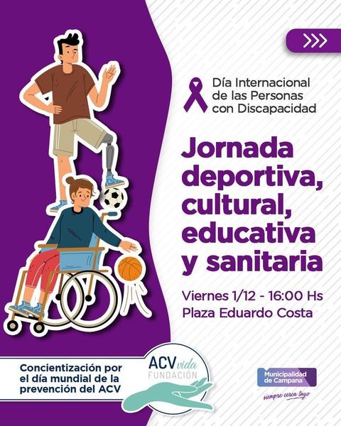 Este viernes 1 de diciembre, en el marco del Día Internacional de las Personas con Discapacidad, el municipio de Campana organizó una Jornada deportiva, cultural, educativa y sanitaria desde las 16:00 en la Plaza Eduardo Costa. AUDIO: MÁRGARA PONS - directora de discapacidad // MATÍAS LUGO - director de deportes
