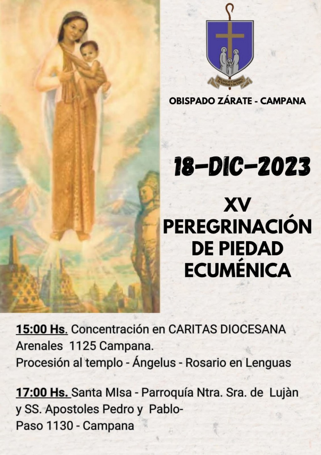 Se realizará el lunes 18 a partir de las 15. Se concentrarán en la sede de Cáritas Diocesana, Arenales 1125; se rezará el Ángelus y el Rosario en lenguas. Desde las 17 se celebrará la santa Misa en la Parroquia Ntra. Sra. de Luján y SS. Apóstoles Pedro y Pablo, Paso 1130. AUDIO: NÉSTOR VILLA - sacerdote