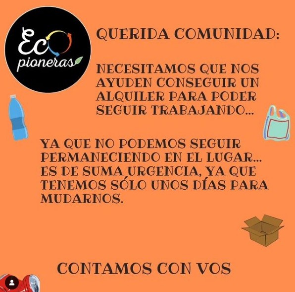 La Cooperativa Ecopioneras debe conseguir un nuevo lugar para poder seguir trabajando. Su presidenta confirmó que no pueden permanecer en el espacio del Barrio Los Pioneros y necesitan mudarse. AUDIO: CRISTINA ROMERO - Pte. Ecopioneras