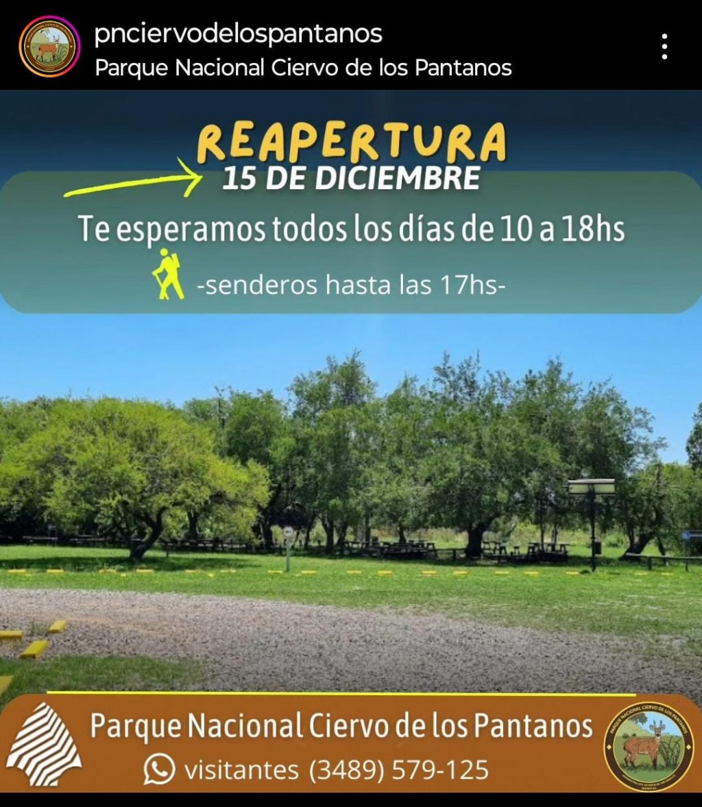 Desde hoy se podrá visitar todos los días de 10 a 18 y los senderos hasta las 17. Como novedad anunciaron que la eco feria estará presente en el predio el sábado 23. AUDIO: FRANCISCO JESÚS GIMÉNEZ - resp. de espacio publico del PN Ciervo de los pantanos