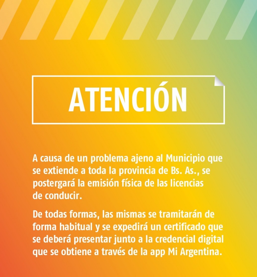 Se debe a la falta temporaria de los insumos que debe proveer la Agencia Nacional de Seguridad Vial. Quienes renueven o realicen su licencia por primera vez durante este mes recibirán una “Constancia de Trámite Aprobado”. Al momento de circular, los vecinos deberán presentar este certificado junto a la Licencia de Conducir en formato digital que se obtiene a través de la aplicación “Mi Argentina”. AUDIO: ROMINA BUZZINI - Subsecretaria de Prevención y Relaciones con la Comunidad