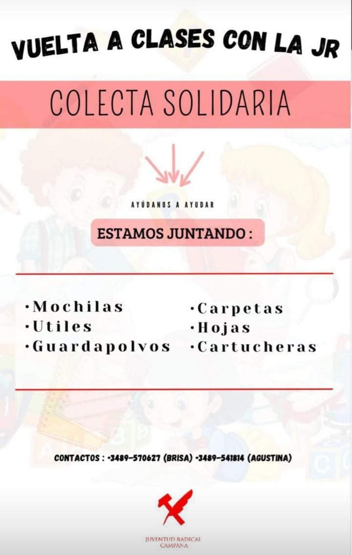 La Juventud Radical de Campana esta desarrollando una colecta solidaria. Reciben la donación de mochilas, útiles, guardapolvos, carpetas, hojas y cartucheras para entregar a los chicos que más lo necesitan. AUDIO: MICAELA RODRIGUEZ - Juventud Radical
