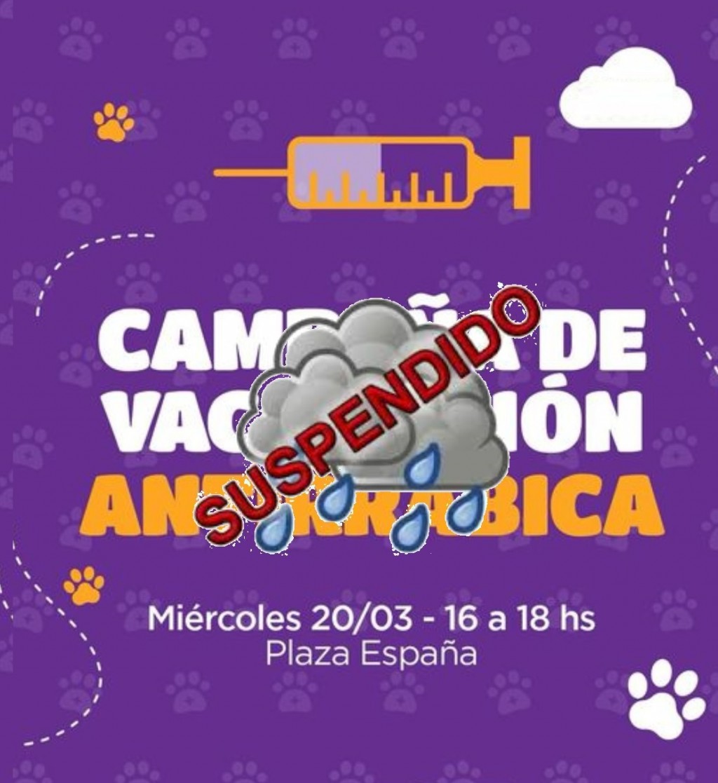 La jornada gratuita de vacunación antirrábica, que se iba a realizar esta tarde, se postergó para el próximo miércoles 27 de 16 a 18 en la plaza España debido a las condiciones climáticas adversas. La vacuna es obligatoria y se debe colocar de forma anual a fin de prevenir la enfermedad. AUDIO: GONZALO BRUTTI - Dir. Gral. de bromatología y zoonosis