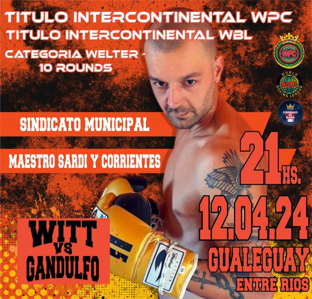Juan Manuel Witt defiende sus títulos WBL y WPC. Será el próximo viernes 12 de abril en la provincia de Entre Ríos y marcará el regreso del boxeador campanense a los cuadriláteros, después de sus presentaciones en EEUU. AUDIO: JUAN MANUEL WITT - boxeador