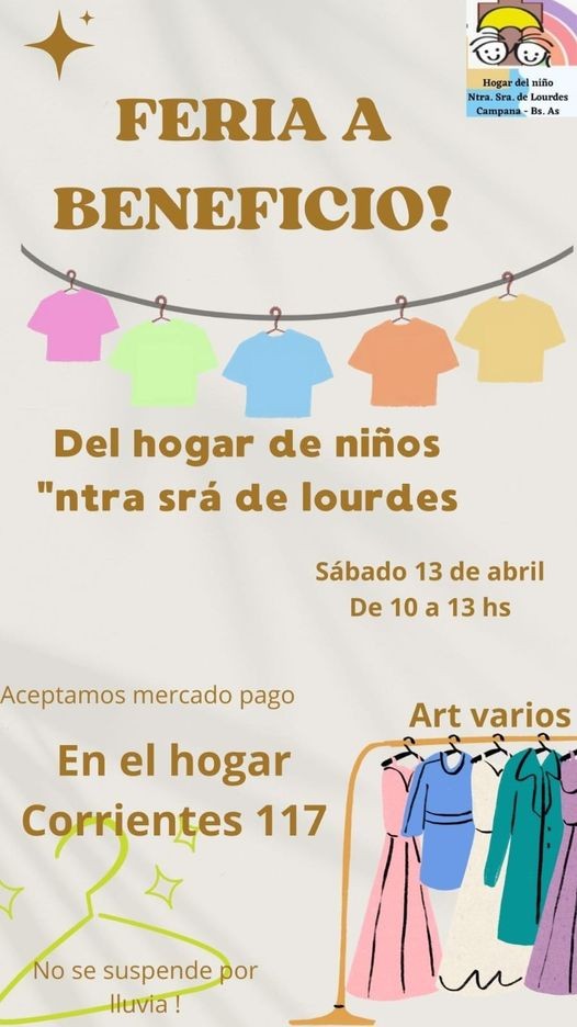Del Hogar de Niños Nuestra Señora de Lourdes. Será este próximo sábado de 10 a 13 en la sede de la institución, Corrientes 117. Habrá varios artículos y no se suspende por lluvia. AUDIO: JUAN ERRECALDE - director del Hogar