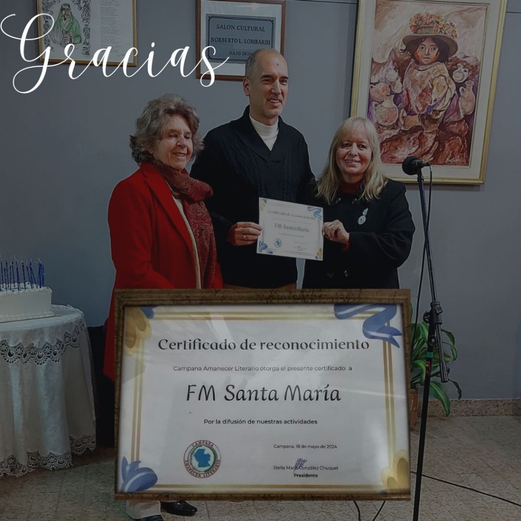 Campana Amanecer Literario cumplió 29 años de trabajo en la ciudad. Lo celebró con la presentación de un nuevo libro y reconoció a FM Santa María por la constante difusión de las obras literarias de los autores campanenses.