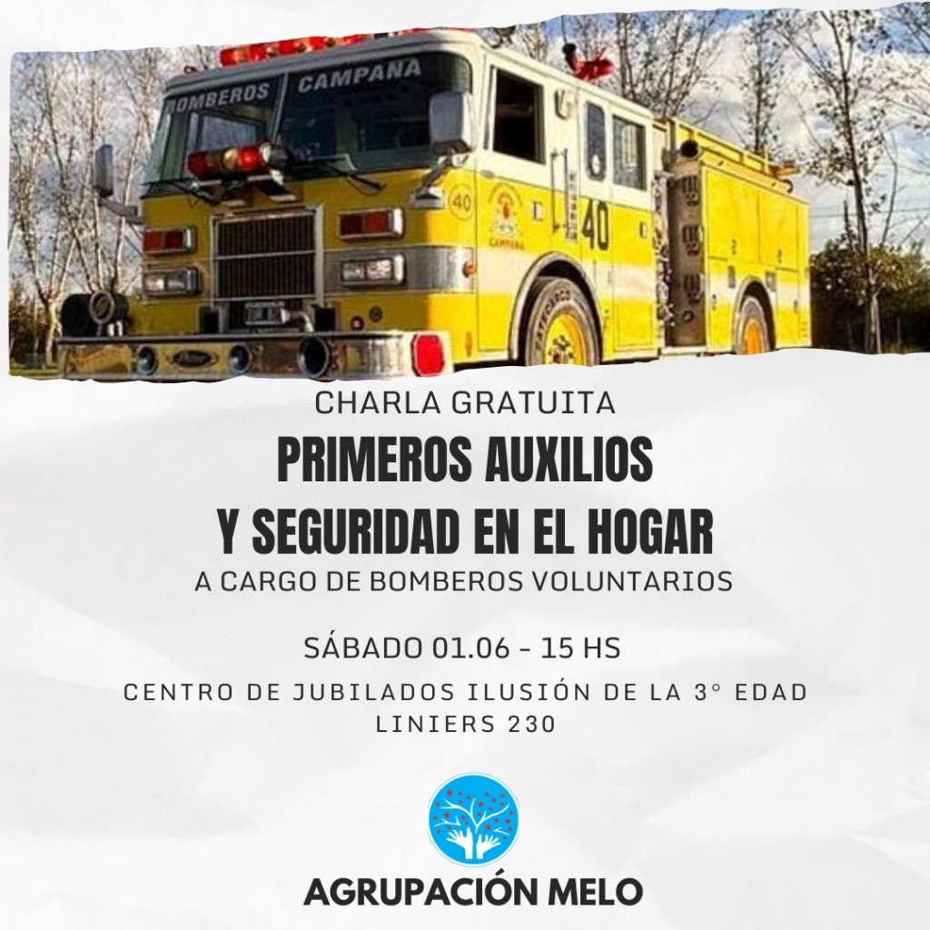 Organizada por la Agrupación Melo mañana se llevará adelante una charla gratuita a cargo de los bomberos voluntarios sobre primeros auxilios y seguridad en el hogar. Será a las 15 en el Centro de Jubilados Ilusión de la 3era edad, Liniers 230. AUDIO: MARCELO FILOSI - Agrupación Melo // ALEJANDRO DEL MÁRMOL - bombero