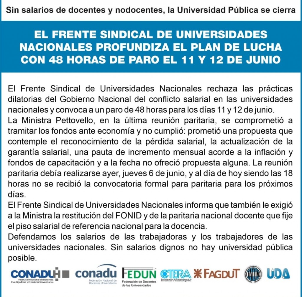 Los gremios anunciaron un nuevo paro nacional de 48 horas para este martes y miércoles. Es por la falta de respuesta del Gobierno a su reclamo por la caída del salario. Además, se unirán a los sindicatos de la CGT que se movilizarán al Congreso por el debate de la Ley Bases el miércoles. AUDIO: RICARDO MOZZI - Paritario nacional y Pte. de FAGDUT Delta