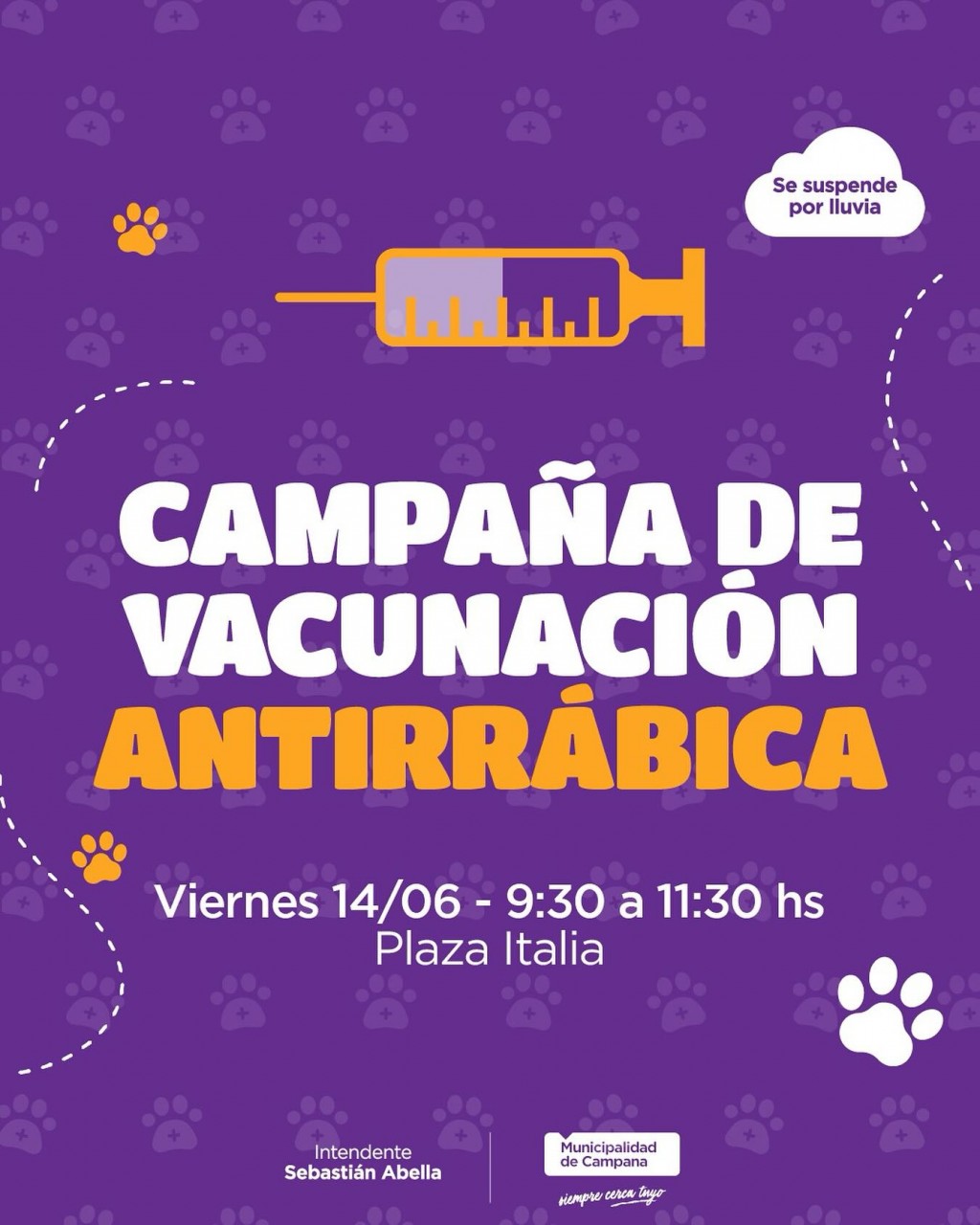 Se realizará mañana una jornada gratuita para mascotas. Será de 9.30 a 11.30 en la plaza Italia. La vacuna es obligatoria y se debe aplicar de forma anual a fin de prevenir la enfermedad viral que puede ser contagiada tanto a animales como a personas. Se aplica por orden de llegada y se suspende por lluvia. AUDIO: GRACIELA SCHINONI - Subdir. de zoonosis