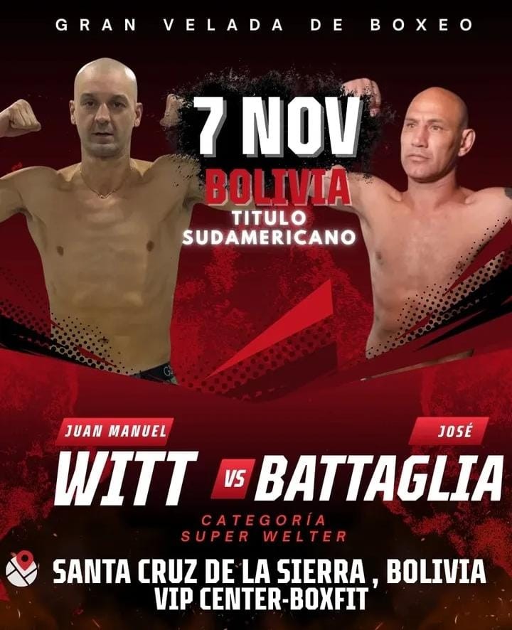 El boxeador campanense Juan Manuel, "EL PRINCIPITO", Witt peleará este viernes ante José Battaglia por la categoría welter. La velada de boxeo será en Santa Cruz de la Sierra, Bolivia, por el título Sudamericano. AUDIO: JUAN MANUEL WITT - boxeador