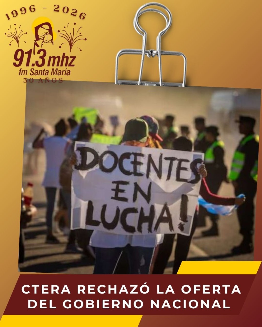 CTERA rechazó la oferta del Gobierno Nacional en la Paritaria Nacional Docente y la negociación pasó a cuarto intermedio. Los sindicatos plantearon la necesidad de establecer un salario acorde a la canasta familiar, la restitución del FONID, el cumplimiento de la Ley de Financiamiento Educativo, el aumento de las partidas para comedores escolares y mayores recursos para infraestructura y construcción de escuelas. AUDIO: MAURICIO VILLANUEVA - sec. gral SUTEBA Campana