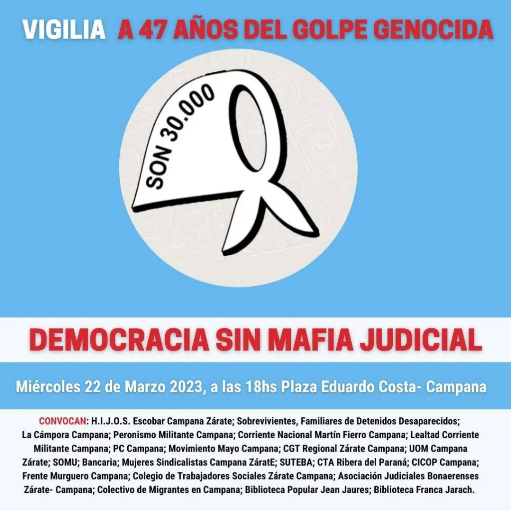La Agrupación HIJOS, Campana, Zárate y Escobar recuerda un nuevo aniversario de la última dictadura cívico-militar en el país, el 24 de marzo. Realizarán distintos actos en las plazas de las ciudades. AUDIO: VICTORIA PAZ - Agrupación H.I.J.O.S.