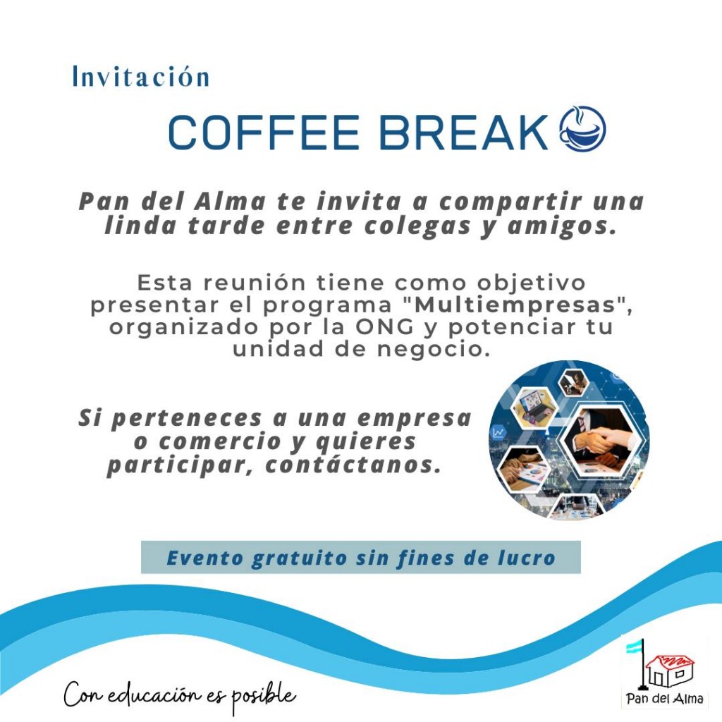 Continúa la inscripción para el Coffee Break de "Pan del Alma". La ONG campanense presentará el proyecto “Multiempresas” mañana en La Vie Celebraciones y está dirigido a responsables de las áreas de Responsabilidad Social Empresaria, Recursos Humanos, Relaciones con la Comunidad y Compras. AUDIO: ROMINA BARRAZA - Pan del Alma