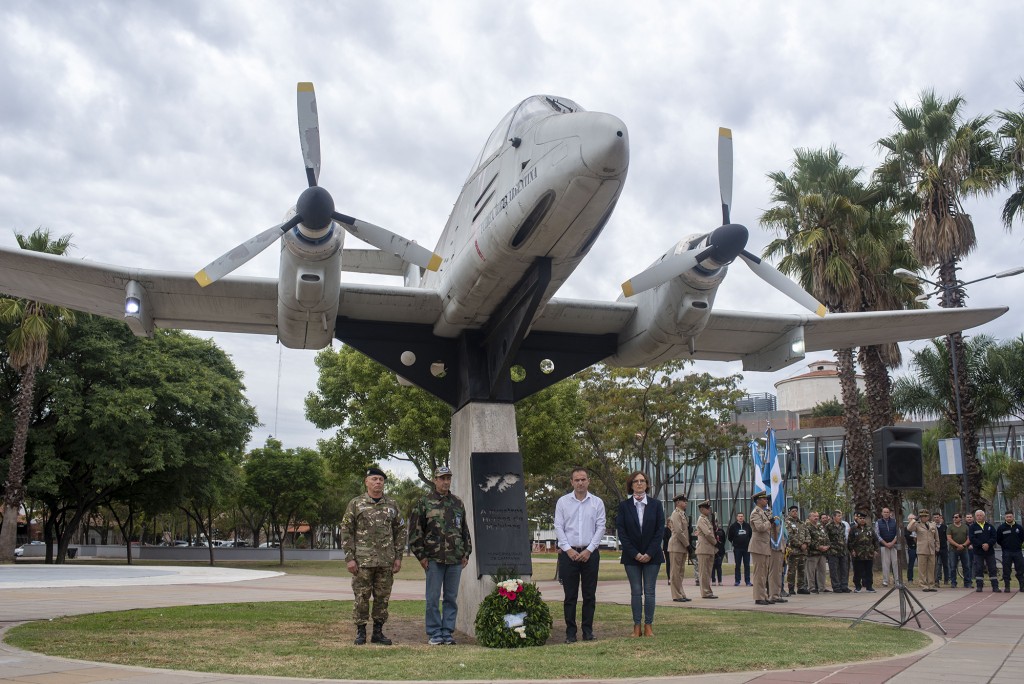 En el Día del Veterano y los caídos en la Guerra de Malvinas, el acto se realizó junto al avión Pucará que honra a los excombatientes de nuestra ciudad. Autoridades municipales y ex combatientes participaron del homenaje. AUDIO: ELBIO HEREÑÚ - Veterano de Malvinas