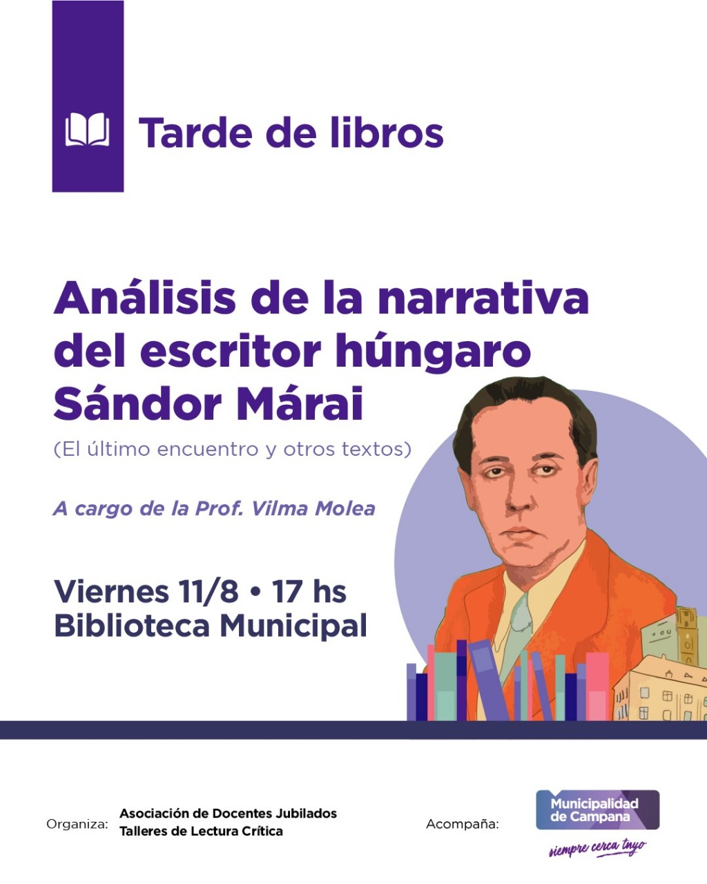 Este viernes a las 17 en la Biblioteca Municipal se realizará un encuentro a cargo de la profesora Vilma Molea sobre un análisis de la narrativa del escritor húngaro Sándaro Márai. AUDIO: VILMA MOLEA - profesora