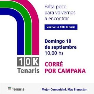 La carrera, 10K Tenaris, se realizará el próximo 10 de septiembre en Campana. Se podrá participar en dos modalidades 3K Recreativo y 10K Competitivo. LA inscripción ya está abierta de manera online. AUDIO: LUIS GRIECO - Gte. de Relaciones con la comunidad de Tenaris