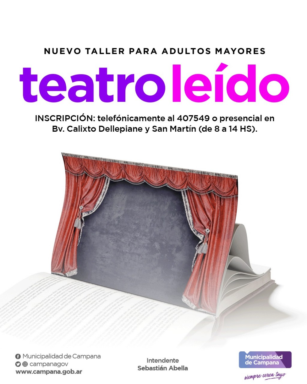 El Municipio comenzará a dictar un taller de Teatro Leído para adultos mayores. Se dará de forma gratuita en la Biblioteca Municipal los lunes de 14 a 15, desde el 11 de septiembre. La inscripción está abierta y no es necesario contar con experiencia teatral previa. AUDIO: MARÍA DE LOS ÁNGELES FERNÁNDEZ - directora de adultos mayores