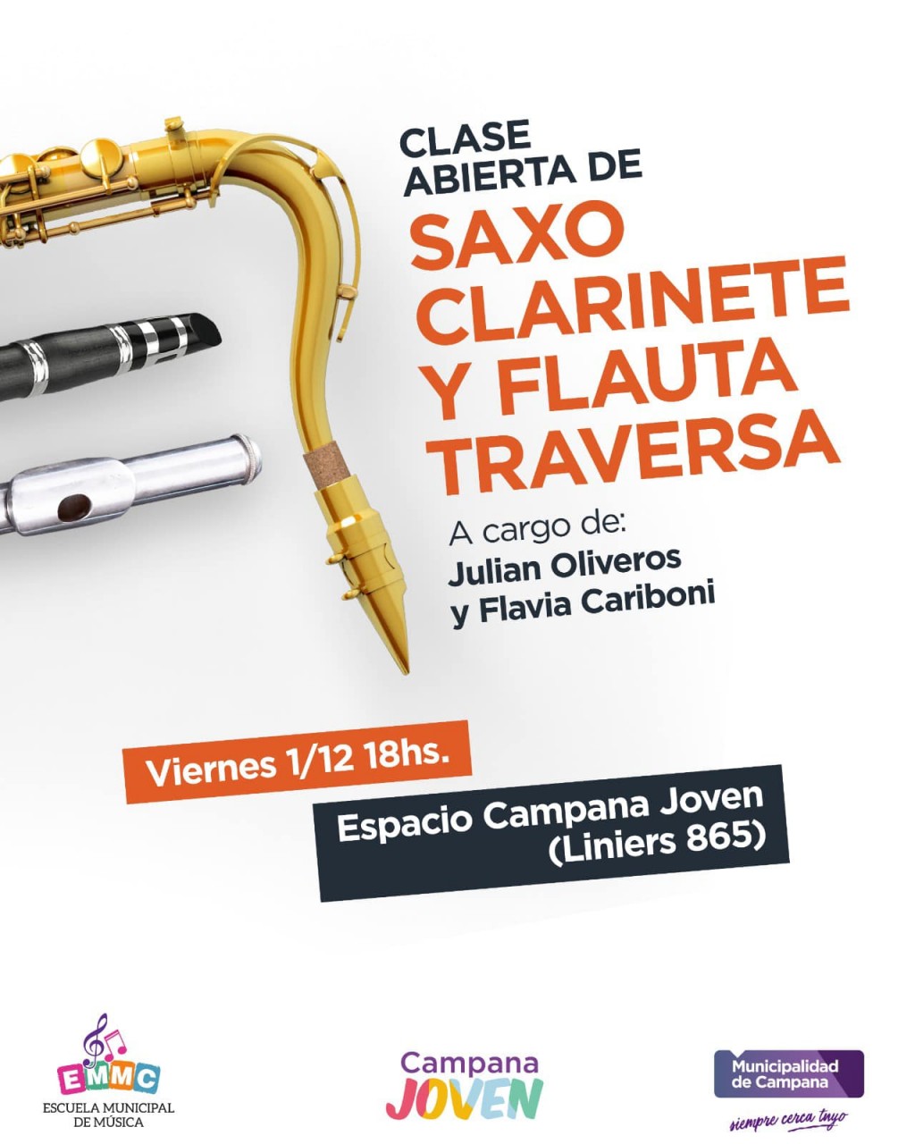 Será de instrumentos de viento como clarinete, saxo y flauta traversa. Es organizada por la de la Escuela Municipal de Música. Será mañana a las 18 En Espacio Campana Joven, Liniers 865, con entrada libre y gratuita. AUDIO: FERNÁN CEJAS - director de juventud