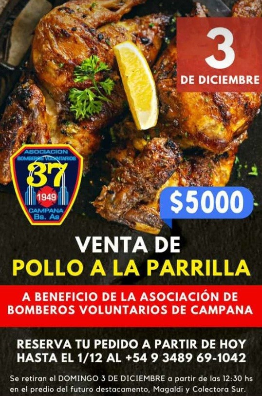 Se realizará una venta de pollo a la parrilla para ayudar a la Asociación Bomberos Voluntarios de nuestra ciudad. Será este próximo domingo en el predio del futuro destacamento en Colectora Sur y Magaldi. AUDIO: JONATHAN CRAVIOTTO - jefe cuerpo activo
