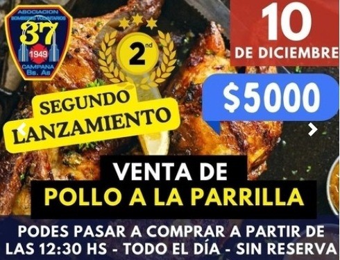 Luego de una exitosa primera edición, la Central de Bomberos Voluntarios de Campana realizará este domingo 10, una nueva venta de pollo a la parrilla para reunir fondos. Se venderá a un costo de $5.000 y los interesados podrán comprar sin reserva previa en la sede del futuro destacamento situado en Magaldi y Colectora Sur, a partir de las 12:30. AUDIO: JONATHAN CRAVIOTTO - jefe cuerpo activo de bomberos