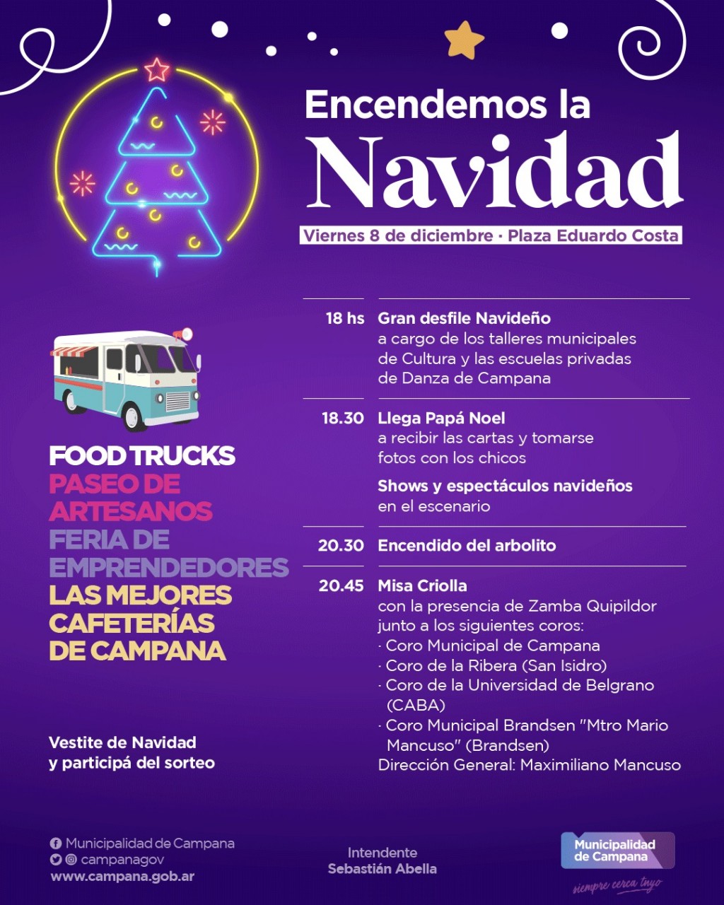 Mañana a las 18 habrá un desfile de los talleres municipales y 18:30 estará Papá Noel con los más chicos. A las 20 está previsto el encendido del árbol y posteriormente la misa criolla cantada por Zamba Quipildor y 5 coros. AUDIO: ELISA ABELLA - sec de inclusión, educación y cultura