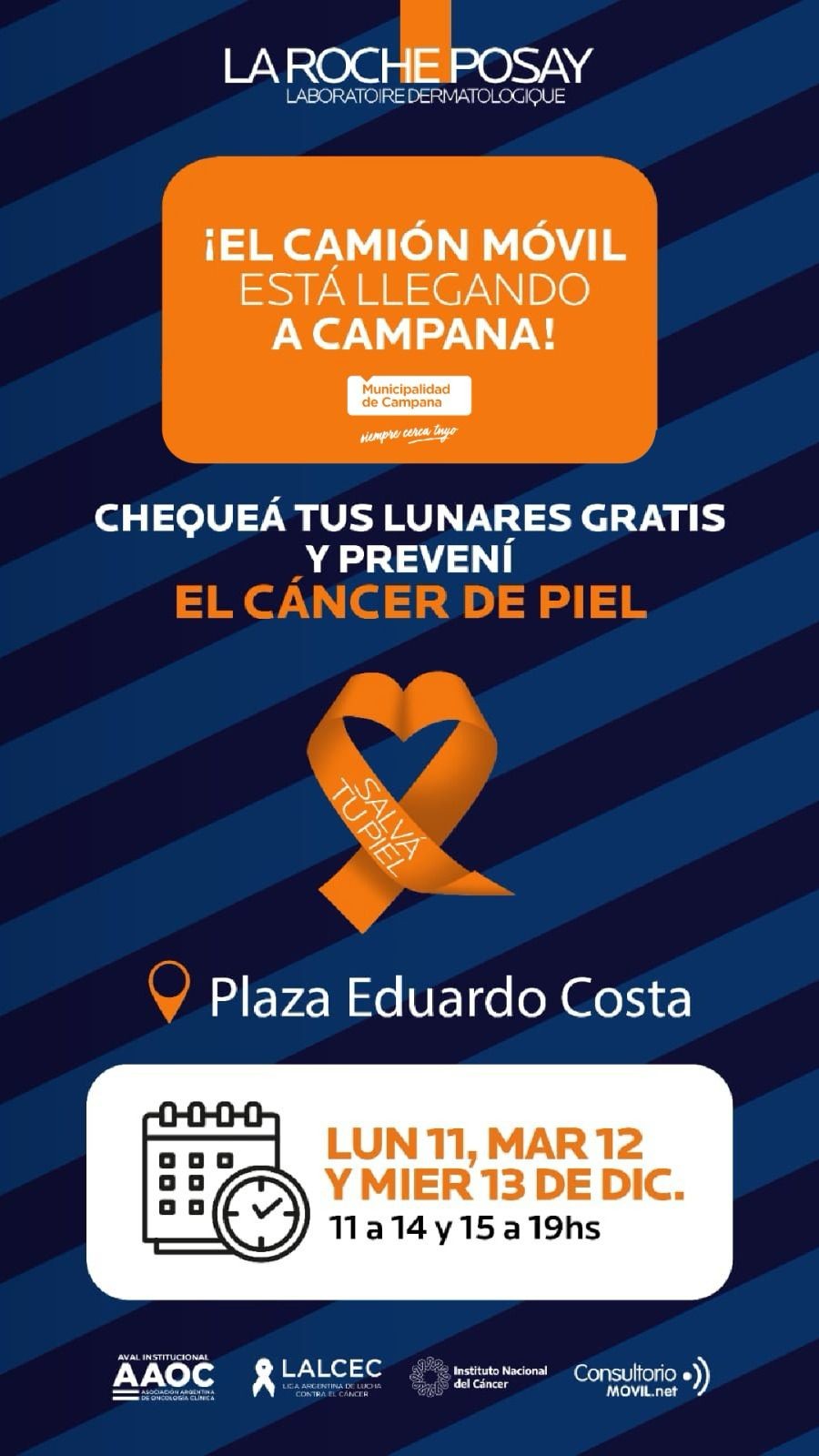 Estará presente el camión móvil de la marca Roche-Posay realizando controles dermatológicos para prevenir el cáncer de piel. Se ubicará en la Plaza Eduardo Costa desde el lunes y hasta el miércoles de la próxima semana. De 11 a 14 y de 15 a 19. AUDIO: ELEONORA PENOVI - Subsecretaria de salud