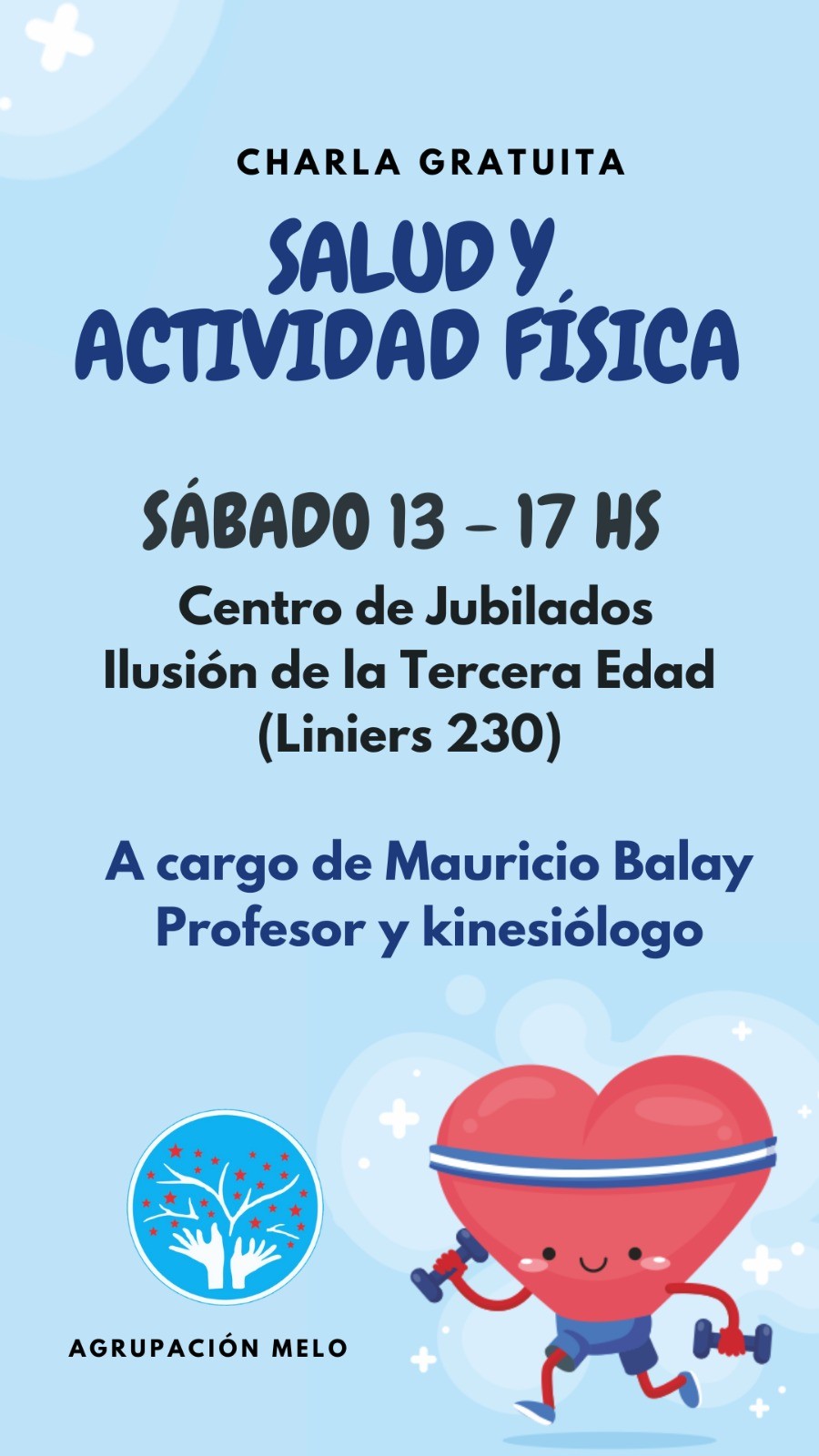 Organizada por la Agrupación Julio Armando Melo en el marco del mes de la Salud y la Semana del Deporte. Se llevará adelante este sábado, a las 17 y estará a cargo el profesor y licenciado en kinesiología, Mauricio Balay. Será en el Centro de Jubilados Ilusión de la Tercera Edad, Liniers 230. AUDIO: MARÍA JOSÉ BENEDETICH - Agrupación Melo