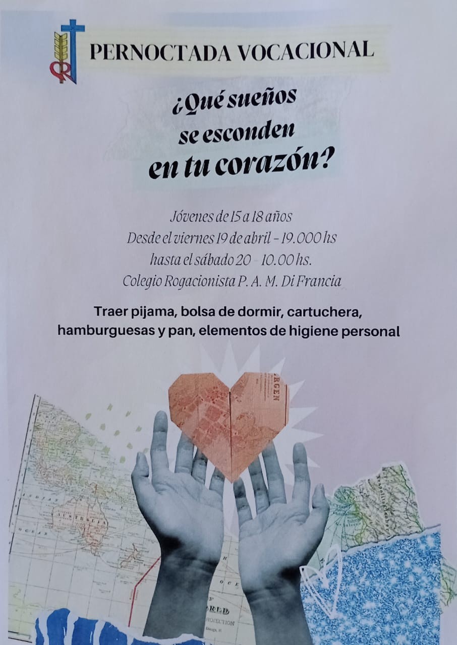 Destinada a jóvenes entre 15 y 18 años se realizará desde este viernes a las 19 hasta el sábado por la mañana en el Colegio Rogacionista Padre Aníbal María Di Francia. El lema que acompañará a los jóvenes será ¿Qué sueños se esconden en tu corazón?. AUDIO: RODRIGO GOLÁN - sacerdote rogacionista