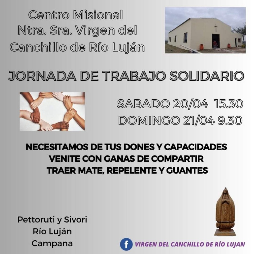 En el Centro misional Virgen del Canchillo de Río Luján se realizará un fin de semana de trabajo solidario para poner en valor el lugar. El sábado las actividades comenzarán 15:30. AUDIO: ANA MARÍA SESÁN - devotos de la Virgen del Canchillo