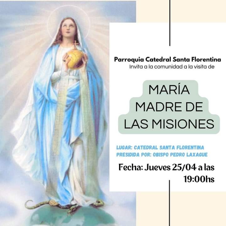 Este jueves a las 19 en la Catedral Santa Florentina se celebrará la Santa Misa en honor a María Madres de las Misiones. La celebración será presidida por nuestro obispo y la imagen de la virgen está recorriendo la Diócesis. AUDIO: FERNANDO CREVATÍN - párroco de Catedral