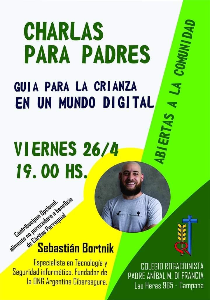 Se realizará en el Colegio Padre Aníbal María Di Francia este viernes a las 19. Estará a cargo de Sebastián Bortnik especialista en tecnología y seguridad informática. El tema será “guía para la crianza en un mundo digital”. AUDIO: SEBASTIÁN BORTNIK - disertante