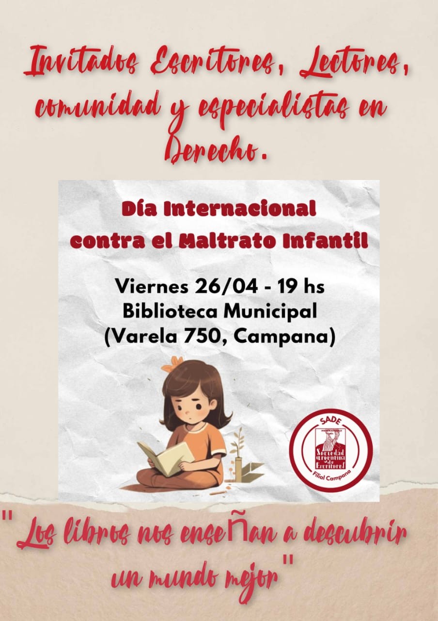 En el marco del día internacional contra el maltrato infantil se realizará el viernes a las 19 en el Biblioteca Municipal un encuentro de escritores, lectores, comunidad y especialistas en derecho. AUDIO: RITA GARCÍA - Infancia Robada