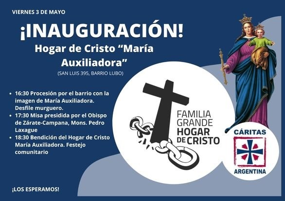 Inaugurará su sede en Barrio Lubo, San Luis 395, esta tarde. A las 16:30 se realizará la procesión por el barrio con la imagen de María Auxiliadora. A las 17:30 la misa será presidida por nuestro Obispo Diocesano. Y a las 18:30 la bendición del hogar y el festejo comunitario. AUDIO: YOLANDA DERI - Cáritas Santa Florentina