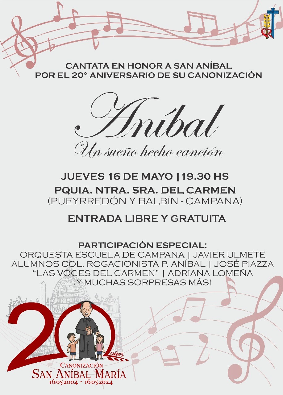 El próximo 16 de mayo se cumplen 20 años de la canonización del Padre Aníbal María Di Francia. La comunidad está organizando diferentes actividades entre ellas una cantata el jueves a las 19:30 en honor a su santo patrono en la Pquia. Ntra. Sra del Carmen. AUDIO: RODRIGO GOLÁN - sacerdote rogacionista