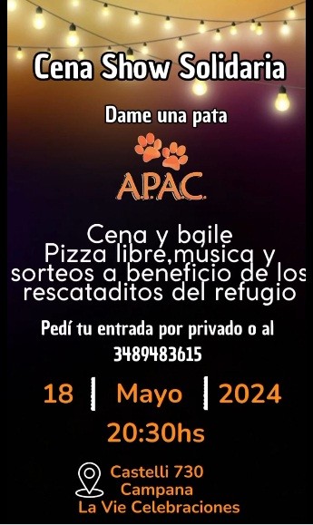 La Asociación Protectora de Animales de Campana sufrió un nuevo robo en su sede del barrio Los Nogales. Para poder financiarse realizarán una cena solidaria este sábado a las 20:30 en Castelli 730. Habrá cena, baile y sorteos. Las entradas ya están disponibles. AUDIO: SILVIA CARMONA - Pte. interina APAC