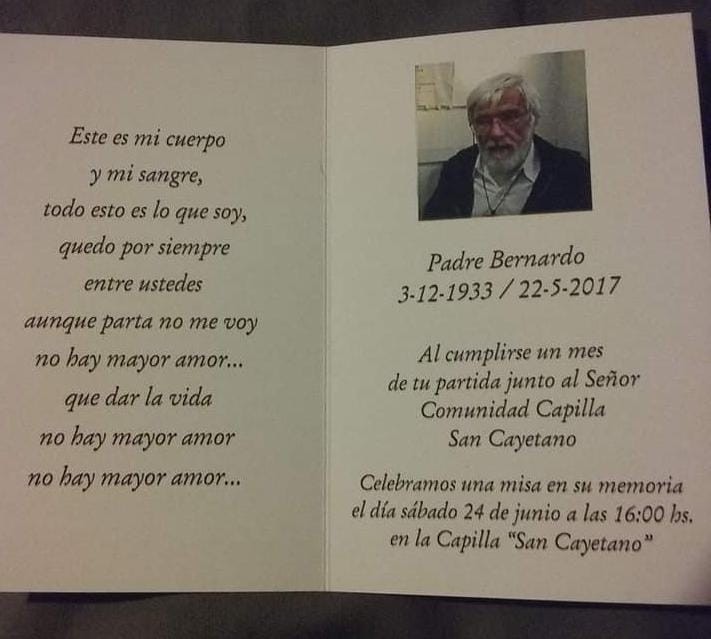 ANIVERSARIO DEL FALLECIMIENTO DEL PADRE BERNARDO