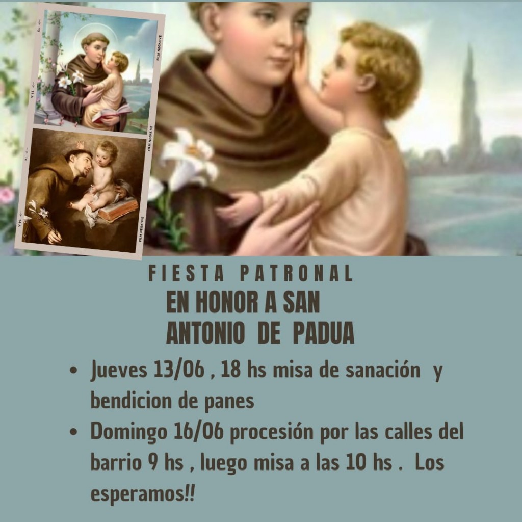 La comunidad de la Capilla San Antonio de Padua celebra sus fiestas patronales. La Misa de sanación y bendición de panes será este jueves a las 18. El domingo la procesión por las calles del Barrio Las Acacias comienza a las 9 y luego la misa a las 10. AUDIO: MABEL PINTOS - catequista