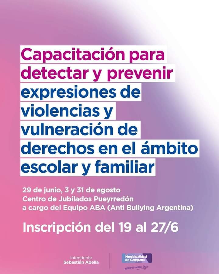 Con la organización del Municipio, se realizarán tres jornadas sobre violencia y vulneración de derechos en el ámbito escolar y familiar. La primera será este sábado, de 10 a 12:30, en el Centro de Jubilados de la calle Pueyrredón. Estará coordinada por el equipo ABA, especialistas en el abordaje de estas temáticas. AUDIO: FERNANDA LAGO - directora de educación