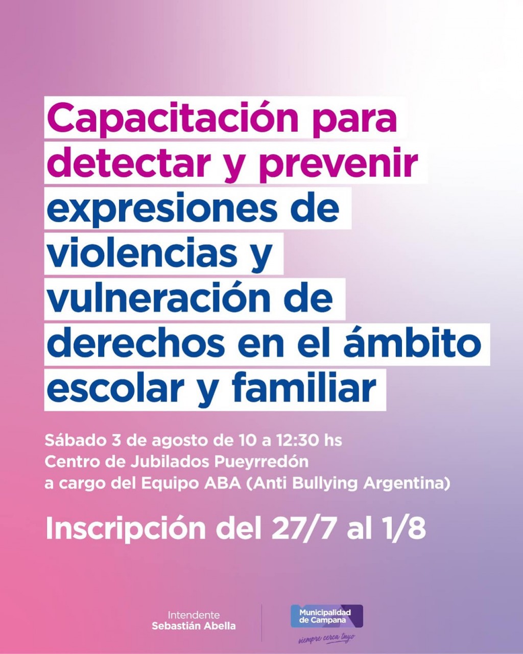 Con la organización del Municipio, se realizará la segunda jornada sobre violencia y vulneración de derechos en el ámbito escolar y familiar. Será este sábado de 10 a 12:30, en el Centro de Jubilados de la calle Pueyrredón. Estará coordinada por el equipo ABA, especialistas en el abordaje de estas temáticas. AUDIO: FERNANDA LAGO - directora de educación