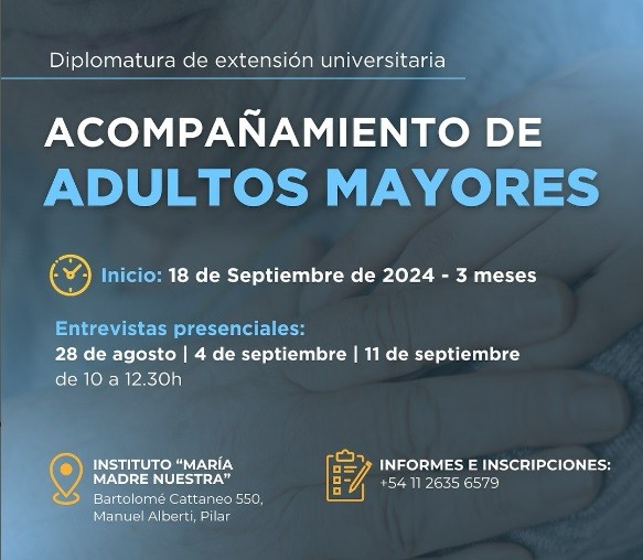 Se desarrollará la diplomatura en Acompañamiento de Adultos Mayorespor por iniciativa de la Universidad Austral, Laicos en Acción de la diócesis y el Instituto María Madre Nuestra. Se dictará a partir del 18 de septiembre en Manuel Alberti (Pilar) y en modalidad presencial. AUDIO: