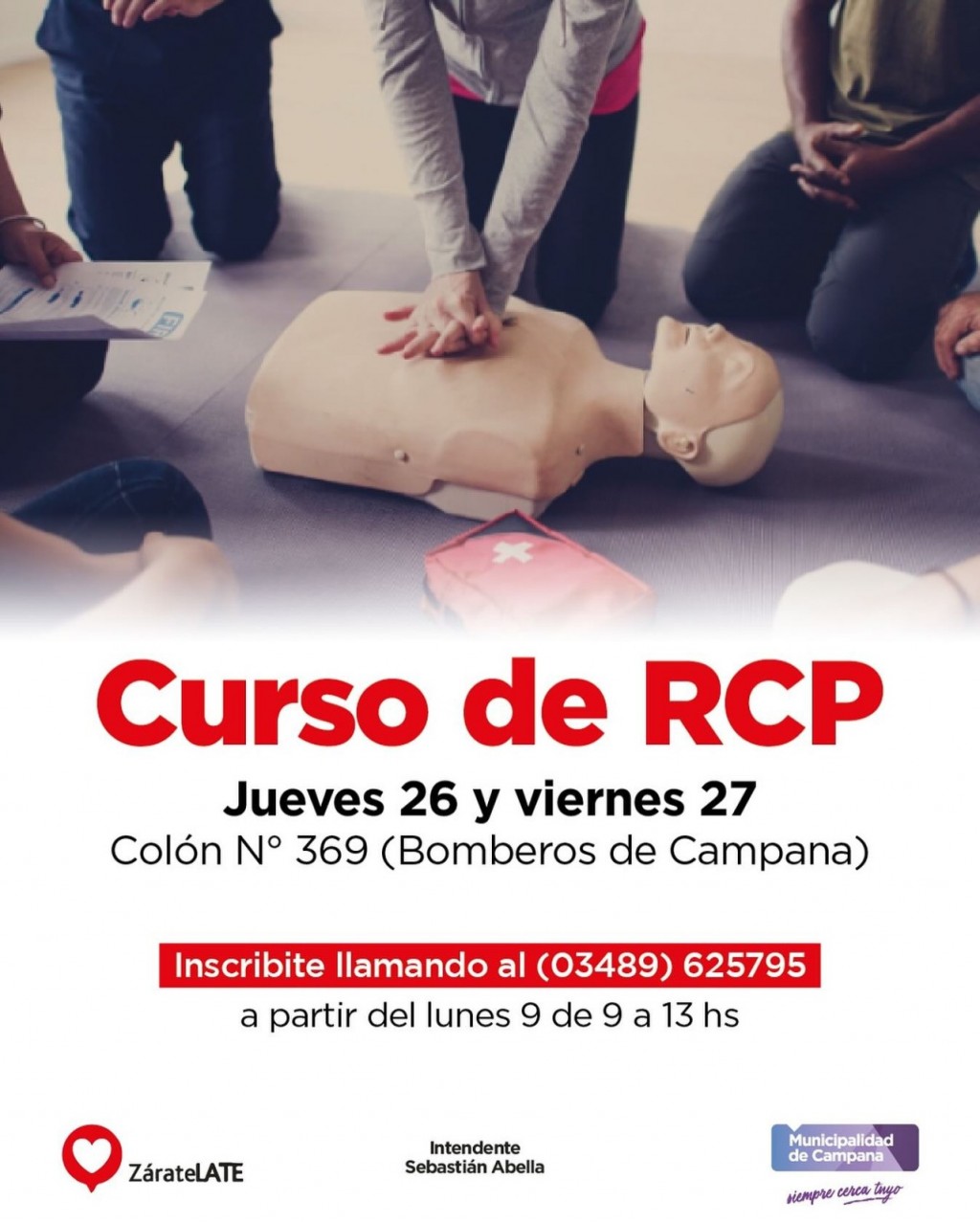 Junto a Zárate Late, el jueves 26 y viernes 27 el municipio realizará una vez más las jornadas de capacitación en Reanimación Cardio Pulmonar en el salón de los Bomberos Voluntarios. La inscripción ya está abierta al teléfono 15-625795 de 9 a 13. El curso es para mayores de 14 años, gratuito y con cupos limitados. AUDIO: LUCIANA RODRÍGUEZ CÁNEPA - directora de salud comunitaria