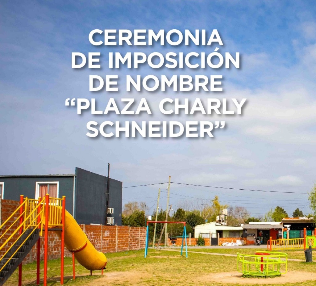 Tras la aprobación de un proyecto en el concejo deliberante y el impulso de la Agrupación Melo se le colocó el nombre de Charly Schneider a la plaza del Barrio Las Praderas, lugar donde Charly colaboraba con los vecinos: AUDIO SEBASTIÁN ABELLA - Intendente // JAVIER CONTRERAS - Agrupación Melo