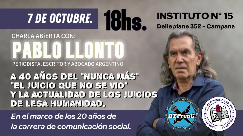 El periodista y abogado compartirá una charla organizada por la Asociación de Trabajadores de Prensa Campana y el Instituto N°15.