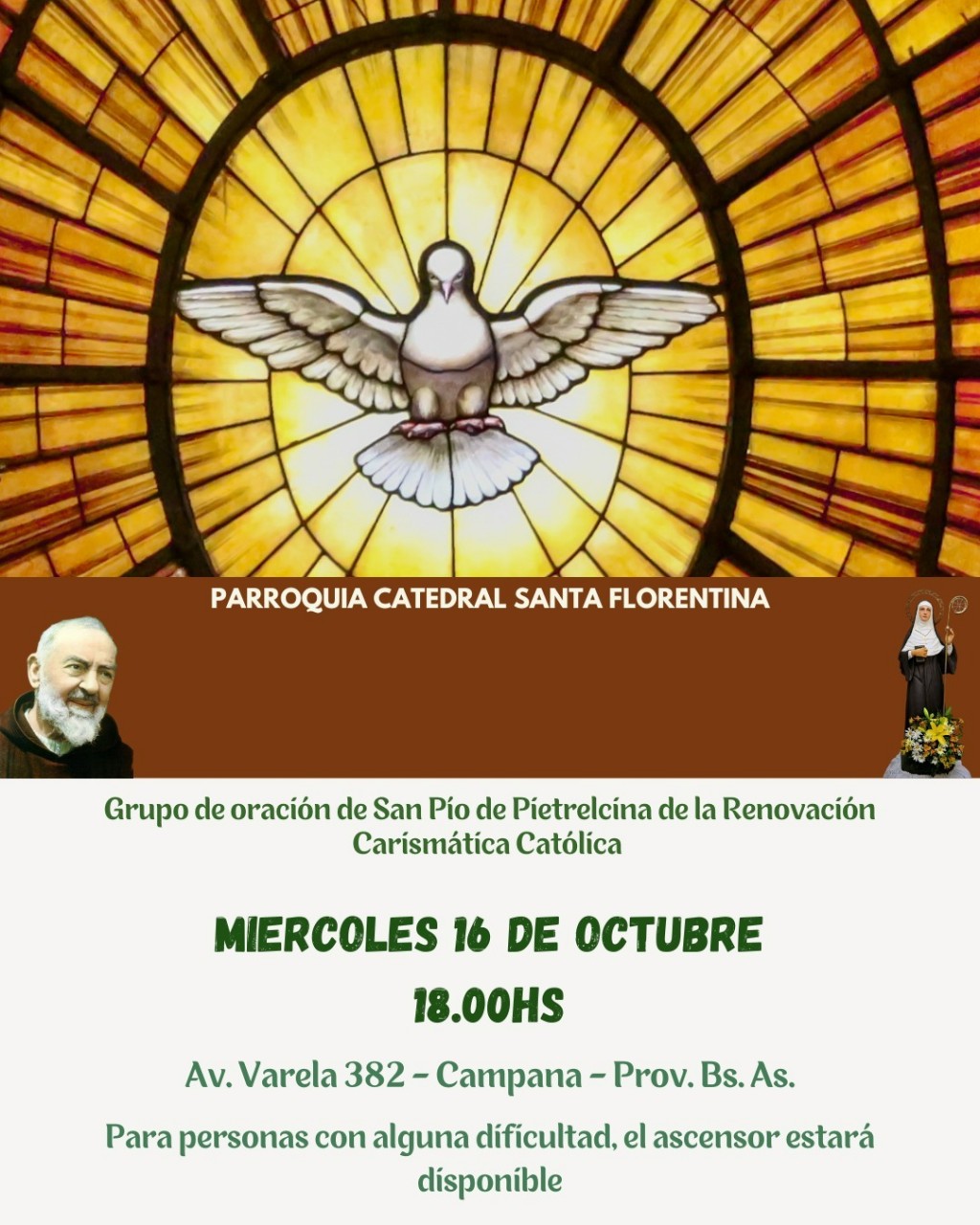 Será mañana a las 18, en la parroquia Catedral Santa Florentina, comenzará con las alabanzas y a las 18:30 la misa y exposición con el Santísimo. Organiza el Grupo de Oración San Pío de Pietrelcina y la Renovación Católica. AUDIO: YOLANDA DERI - Grupo de oración