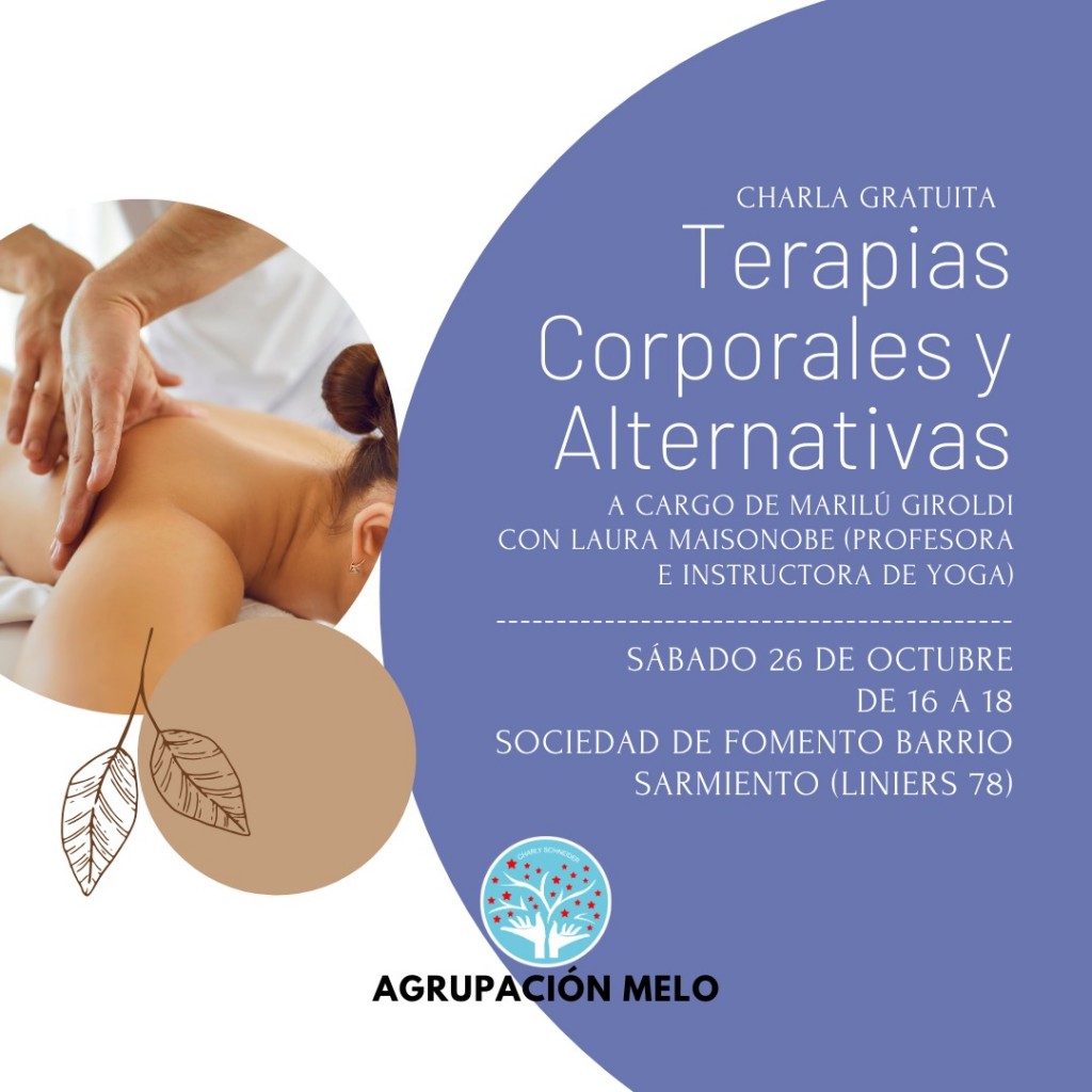 Será sobre terapias corporales y alternativas y estará a cargo de Marilú Giroldi junto a Laura Maisonobe profesora e instructora de yoga. La actividad se desarrollará este sábado en la Sociedad de Fomento de Barrio Sarmiento. AUDIO: JAVIER CONTRERAS - Agrupación Melo