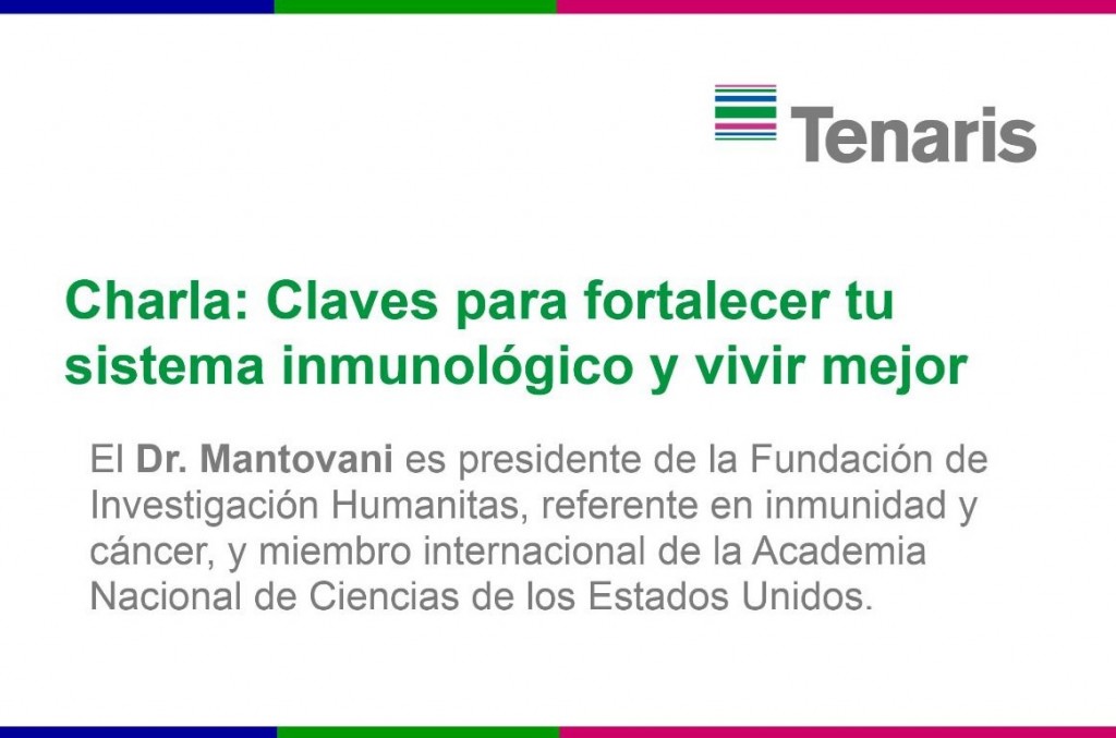 El Dr. Alberto Mantovani brindó una charla abierta a la comunidad acerca de cómo fortalecer el sistema inmunológico y mejorar la calidad de vida y bienestar. La iniciativa fue impulsada por la empresa Tenaris Siderca. AUDIO: CRISTIAN CÉLIZ - gerente servicio médico de Tenaris