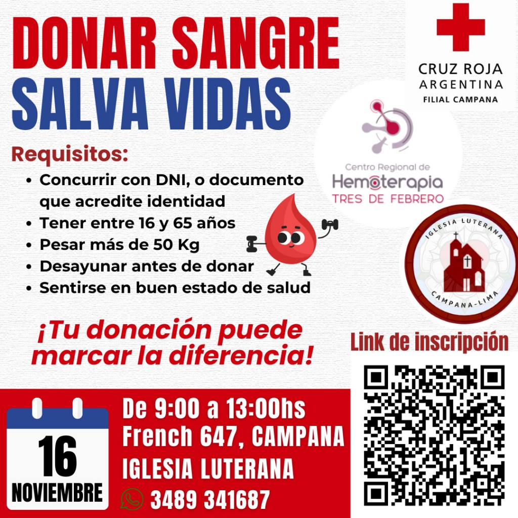 Impulsada por la Cruz Roja Campana la actividad se realizará este próximo sábado de 9 a 13 en French 647. Será una iniciativa en conjunto con el Centro Regional de Hemoterapia de Tres de Febrero. AUDIO: PAULA BALLINI - coordinadora Cruz Roja Campana